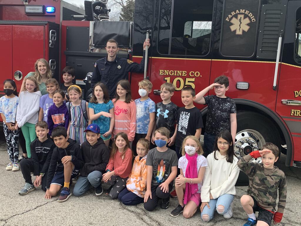 District 58 partners with the Downers Grove Fire Department on several educational initiatives, including the third grade Learn Not to Burn program. As part of the program, students use their fire safety knowledge to design a home fire escape plan and enter it into the contest. The Fire Department carefully reviews each plan and selects the winners.