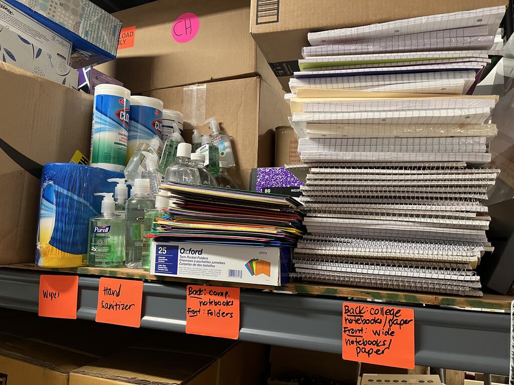 Finally, the Downers Grove Roadrunners Soccer Club, Kim Moustis Group, Accesso Services and Lands' End donated many miscellaneous school supplies to District 58 (pictured below). We sorted these supplies and are using them to fill any supply gaps. We already shipped several out to our schools yesterday!