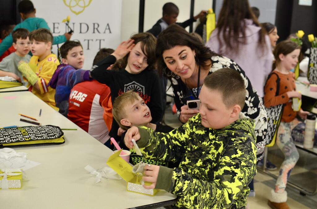 Indian Trail third graders enjoyed a sweet surprise today -- a small but special Valentine's Day celebration with Kendra Scott and the Museum of Ice Cream. The two brands recently teamed up to give back to different schools in the Chicago, New York and Austin areas. The students enjoyed Valentine's Day crafts, an ice cream sample, and a Valentine-themed goodie bag to take home. Here are some photos from the fun!