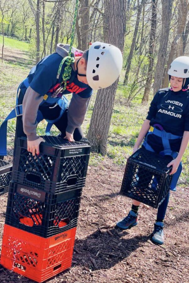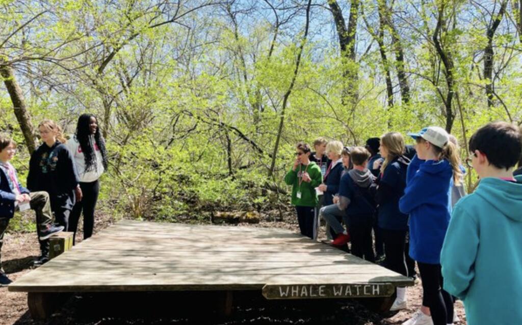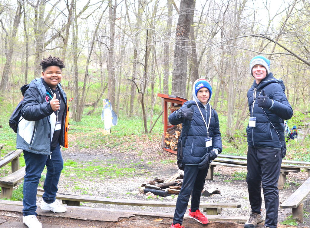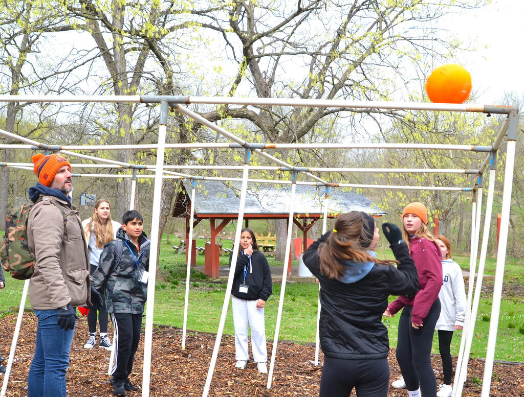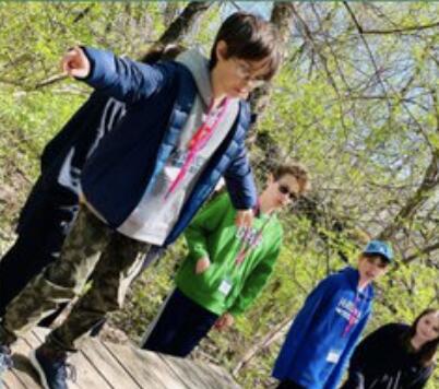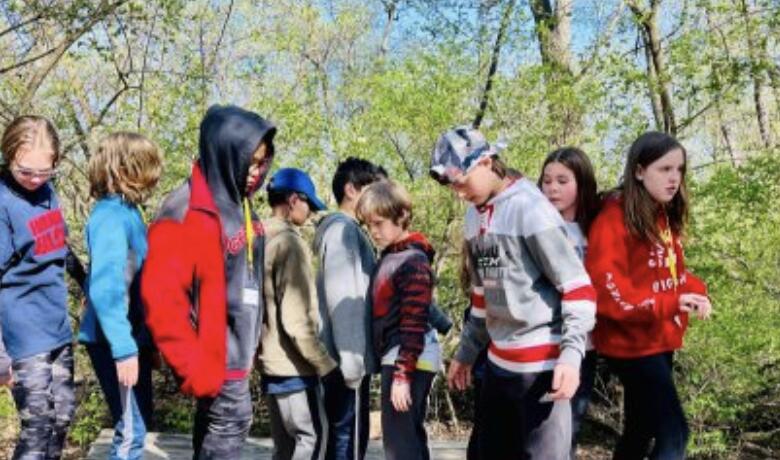Sixth graders traveled to Camp Manitoqua in Frankfort, IL., for a day-long Outdoor Education experience this week after a two-year hiatus due to the pandemic. The days were spent in team building activities and hands-on science, including a hike observing animal tracks and trees and learning about the food chain and decomposition. Students also learned orienteering, how to use a compass and read a map in addition to fun, team activities such as a slingshot paintball biathlon, a crate stacking competition, and a team balance challenge, among others. While this year’s trip was not overnight, it meets most of the goals of the district’s traditional 2 ½ day Outdoor Education experience. Due to the continued uncertainty of COVID, planning for this year’s trip didn’t begin until fall. This year's trip will be evaluated along with a number of other options in order to plan next year’s Outdoor Ed. The Thursday, April 20 outing was rescheduled due to expected thunderstorms.