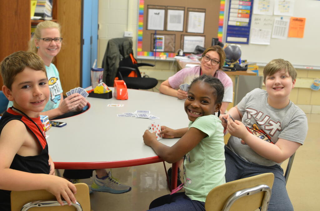 Students could choose from a variety of mini-classes at Community Day, a favorite tradition at Indian Trail. They could learn how to suss out clues by being a detective, learn how to care for puppies from the Humane Society, make a gift for Mother's Day, learn a new card game or learn fun dance moves, badminton and juggling. There were dozens of choices for the students, taught by teachers, parents and community members.