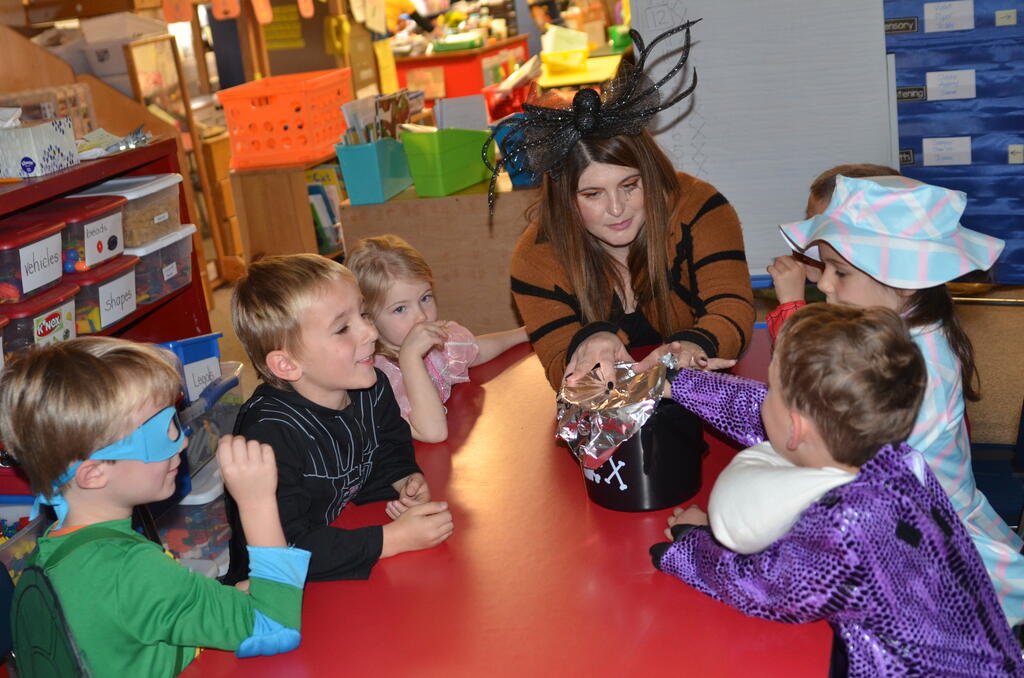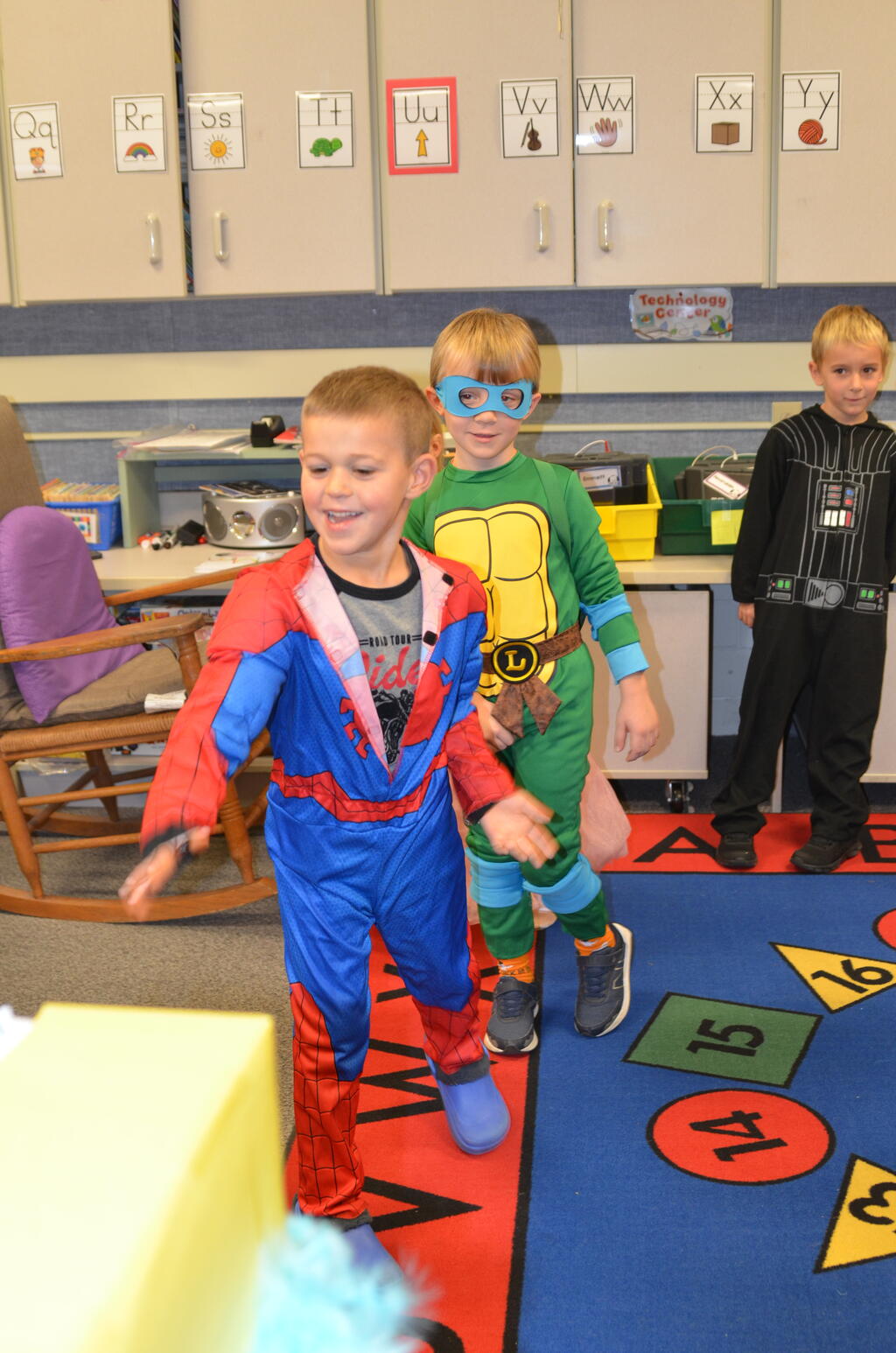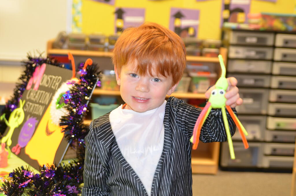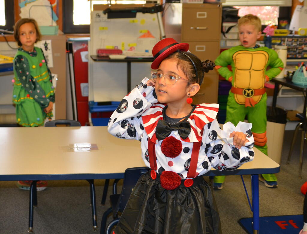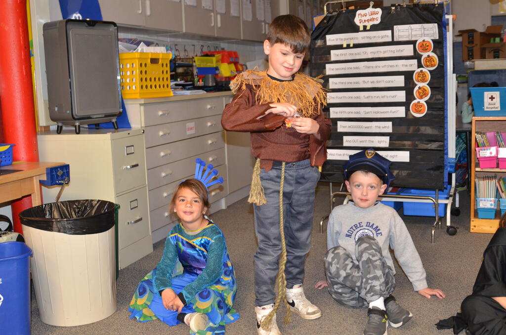 Kindergartners held their Halloween parties inside playing games and later paraded outside in costumes. Thank you to parents who helped organize and run the games and parties!
