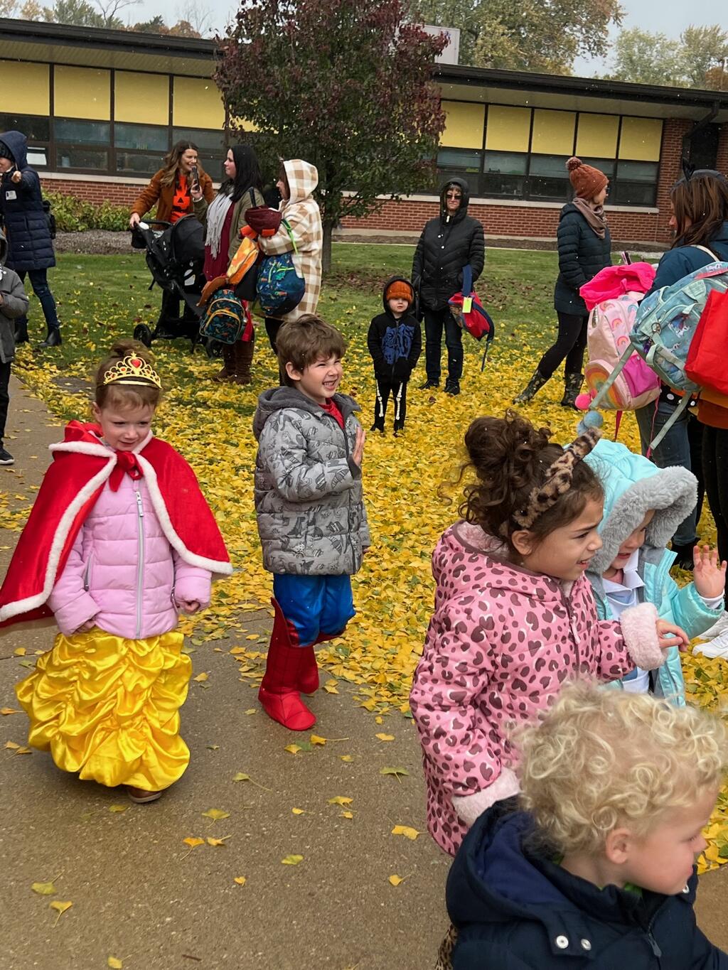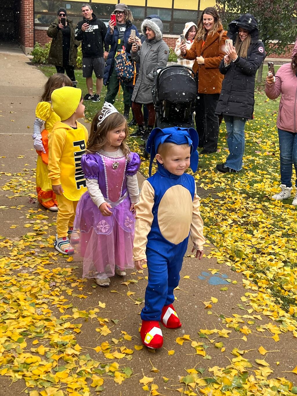 The Preschool at Henry Puffer braved the snow and held a parade in front of admiring parents and grandparents, some dressed in costume.