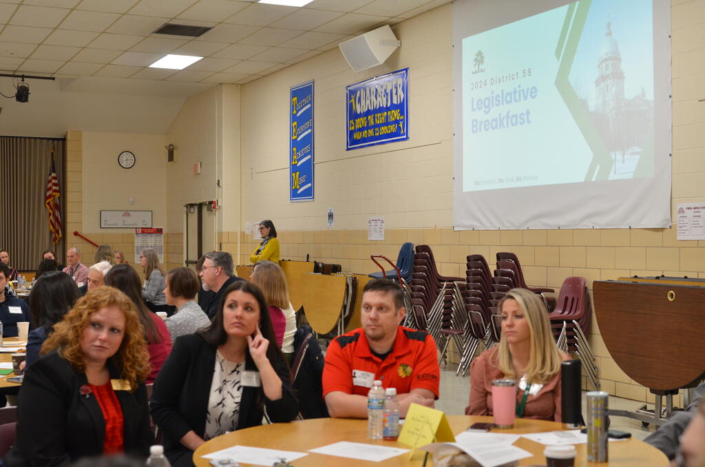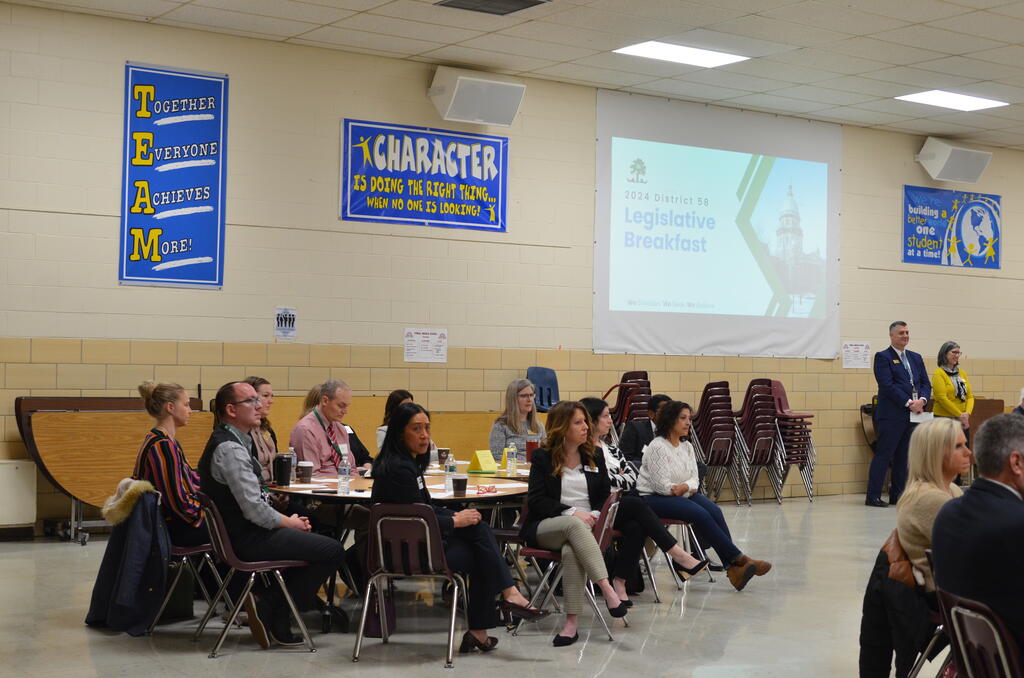 Six state legislators joined local elected and appointed officials as well as parents and community members at District 58’s 2024 Annual Legislative Breakfast Feb. 2. It is a years-long tradition in District 58 to welcome state and federal legislators, along with school and community leaders, to discuss education and how legislators and educators can partner to find solutions.
