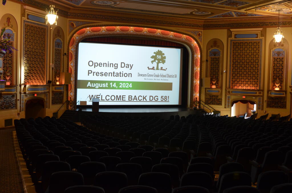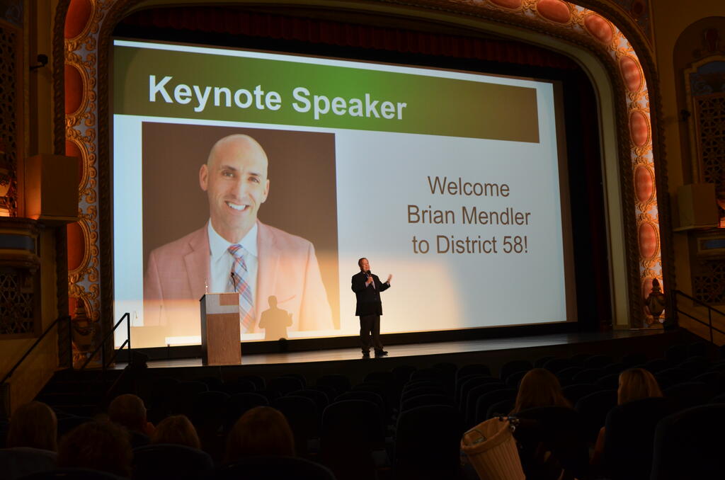 All District 58 staff gathered at the Tivoli Theatre on the morning of Wednesday, Aug. 14 to kick off a new school year. Staff enjoyed refreshments; District updates, milestones and celebrations; and a keynote speech by Brian Mendler, a motivational speaker who focuses on student behavior, classroom management and student engagement. Here are some highlights!