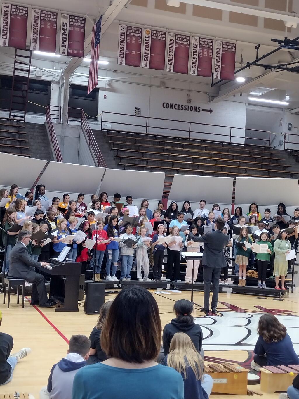 Twenty-two District 58 fourth- and fifth-grade choir and general music students participated in the Illinois Music Education Association's (ILMEA) Elementary Music Festival on April 26 at Argo Community High School. The students joined intermediate grade students from ILMEA District 1 school districts for a morning of music making and music learning! The event culminated in a concert.