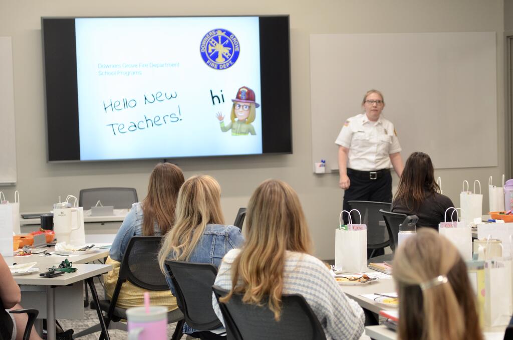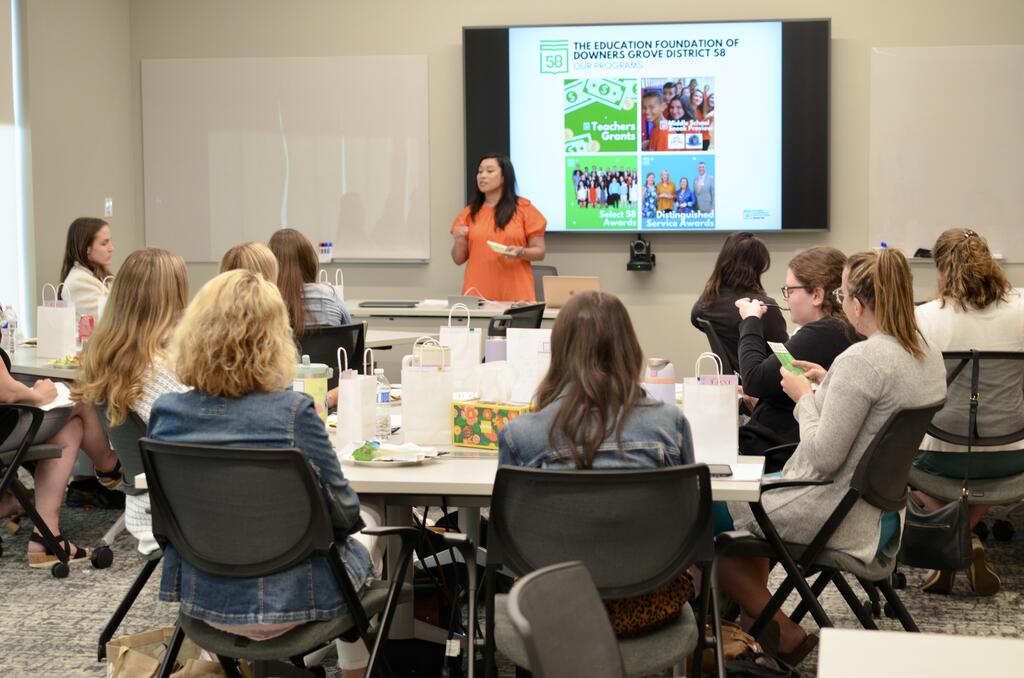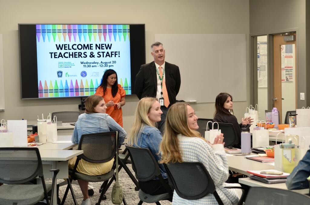 District 58 welcomed 15 new teachers during the week of August 18. Throughout New Teacher Week, they participated in onboarding sessions, professional development, and classroom preparations for the new school year. Our new staff were also warmly welcomed by the community with luncheons hosted by the District, the Lions Club, the Education Foundation, and the DGEEA. Featured here are photos from the opening day of New Teacher Week, the Lions Club Luncheon, and the Education Foundation Luncheon, which included presentations from the District, Education Foundation, Police, Fire, Library, and Park Districts.