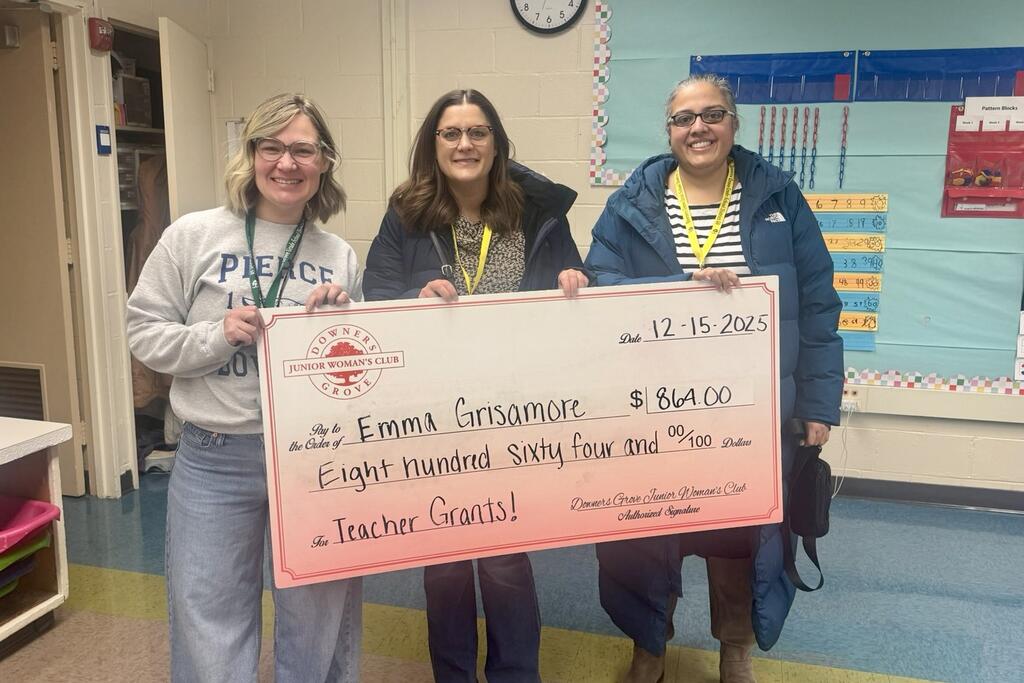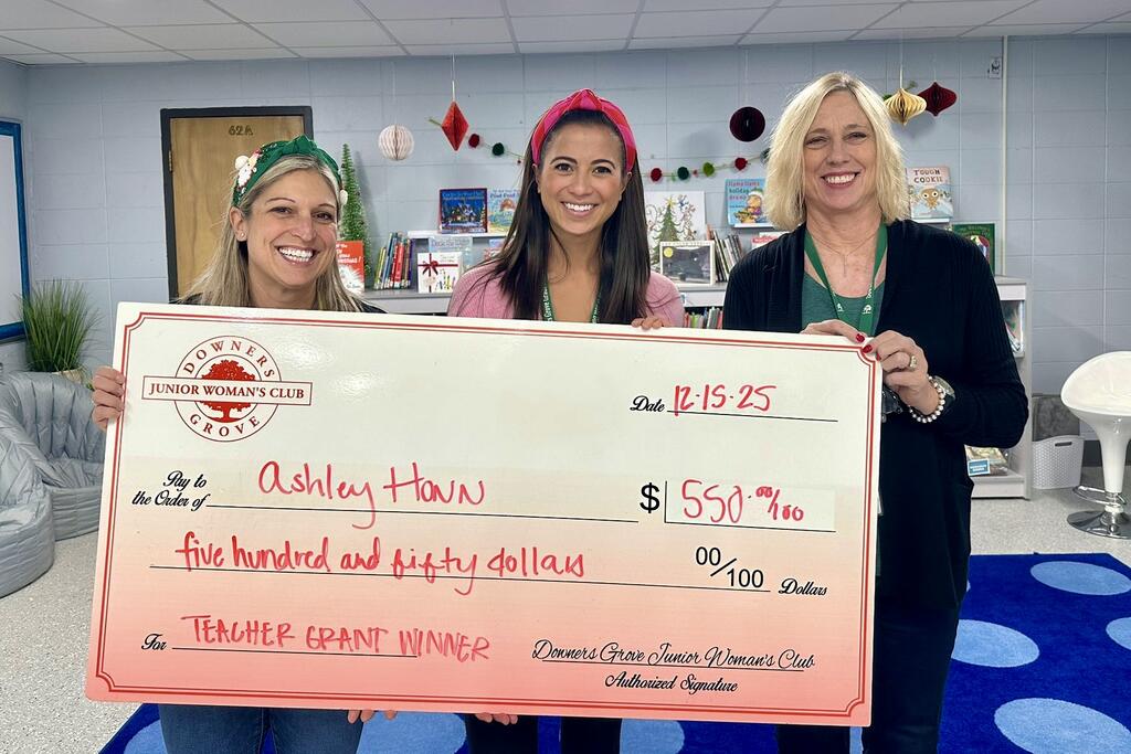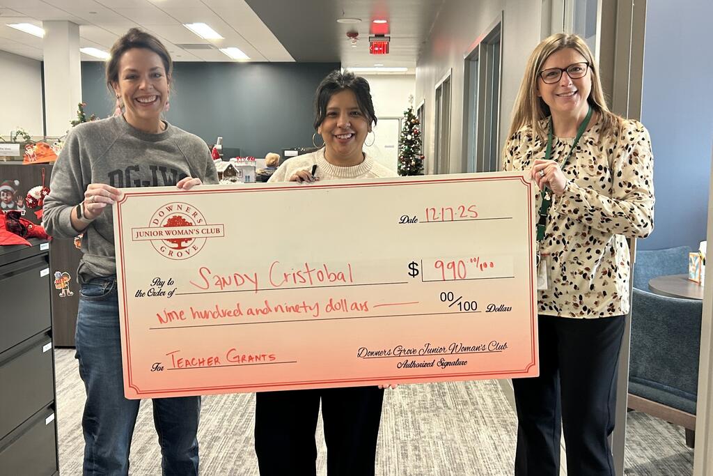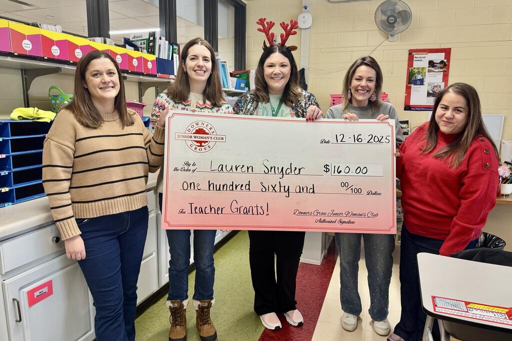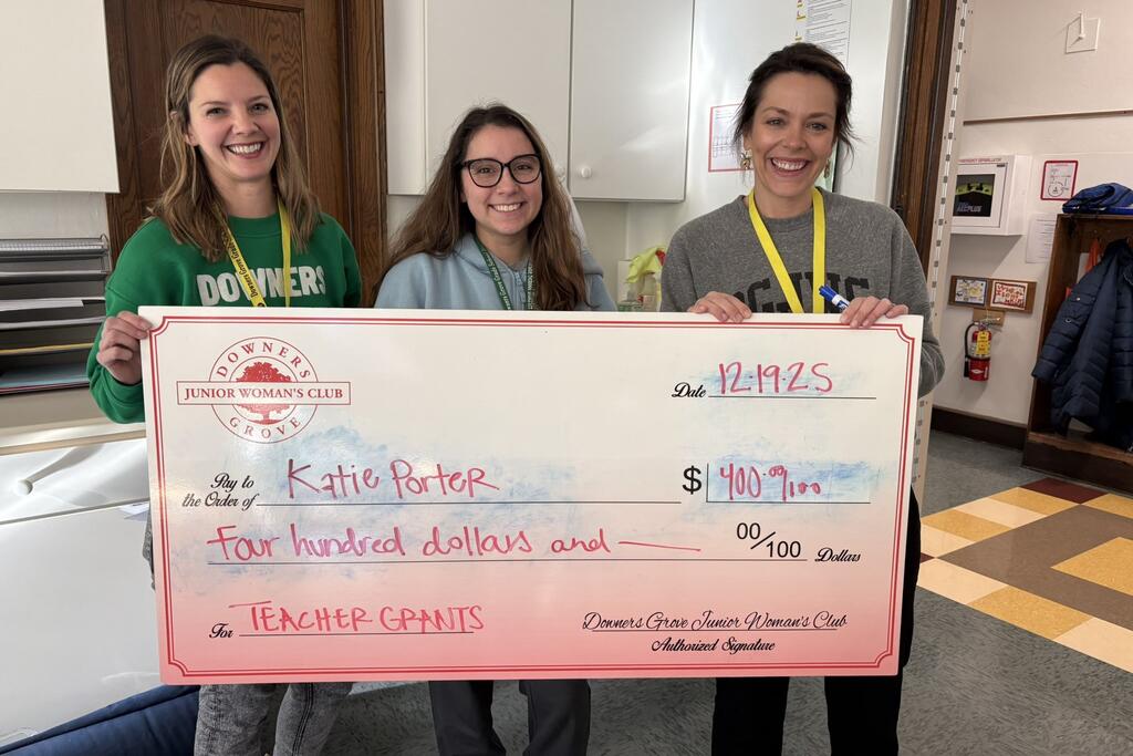 Congratulations to the thirty-three District 58 educators who earned grant awards from the Downers Grove Junior Women’s Club. Club members recently surprised recipients with their awards at their schools. Please join us in congratulating these teachers on this well-deserved recognition. We are grateful for our strong partnership with the DGJWC and thank them for their continued generosity and support of our staff and students.