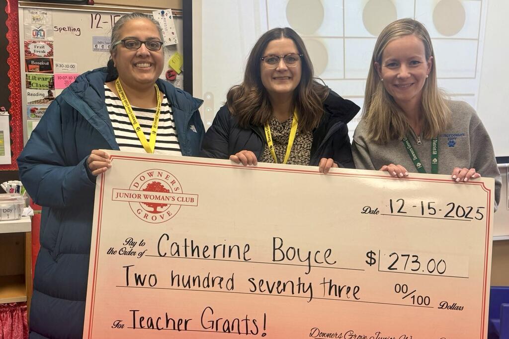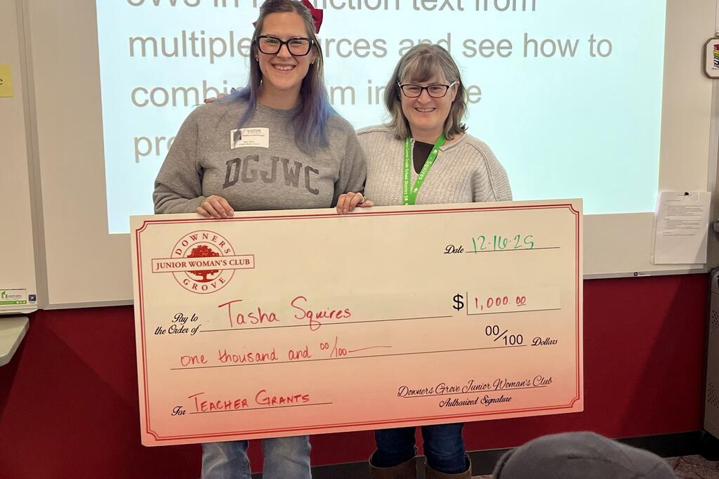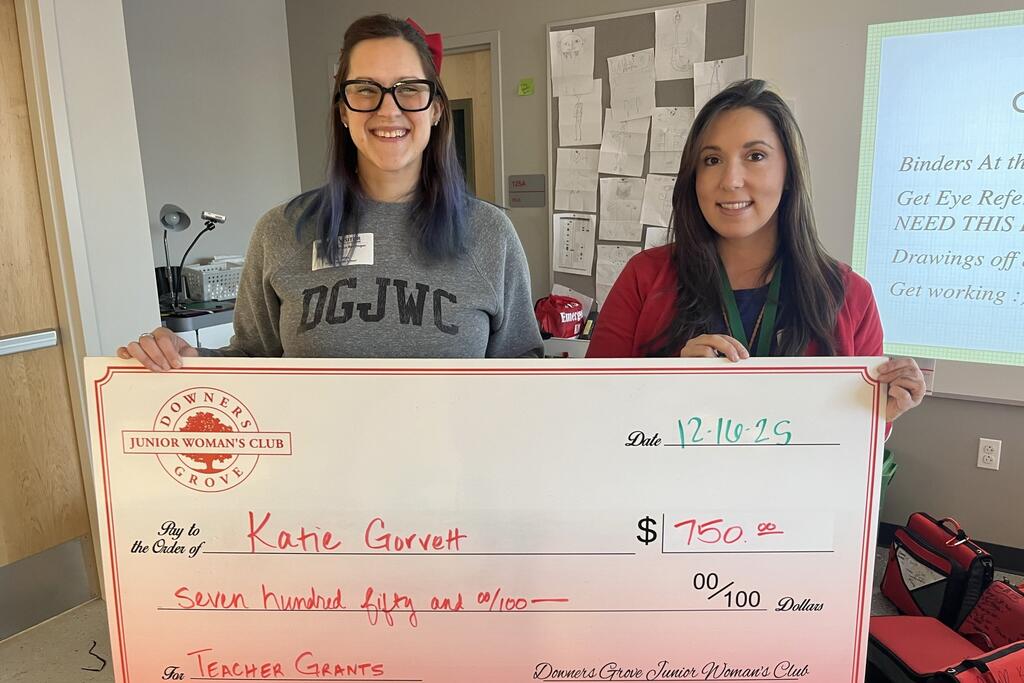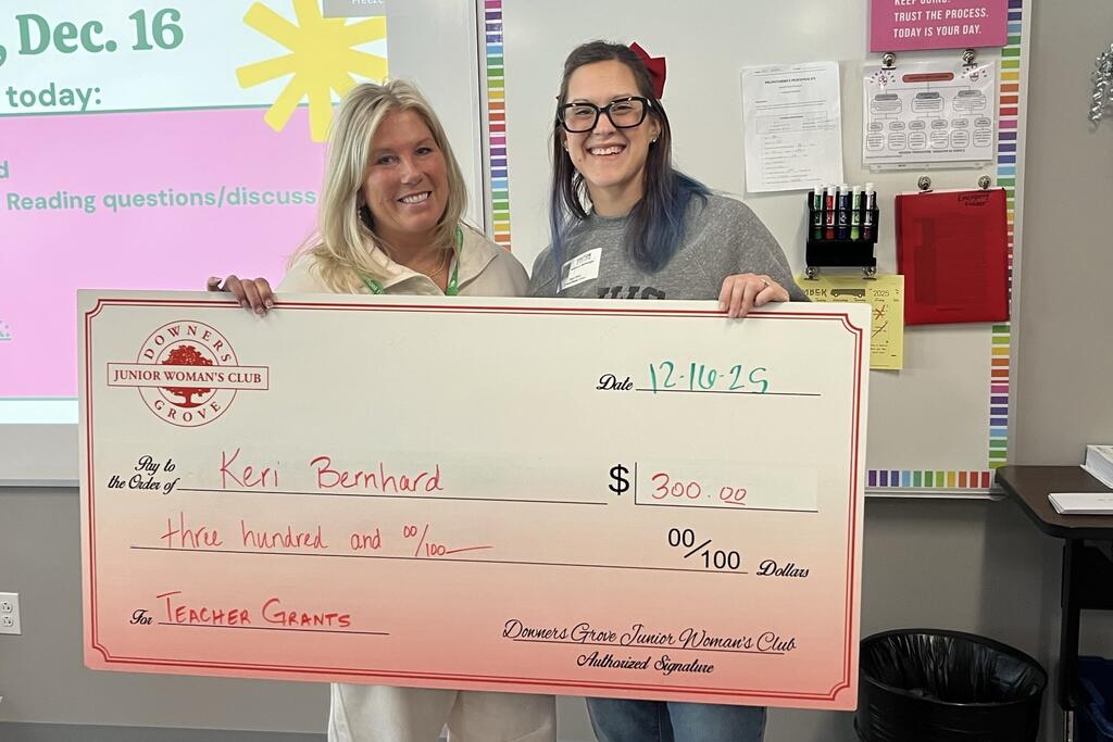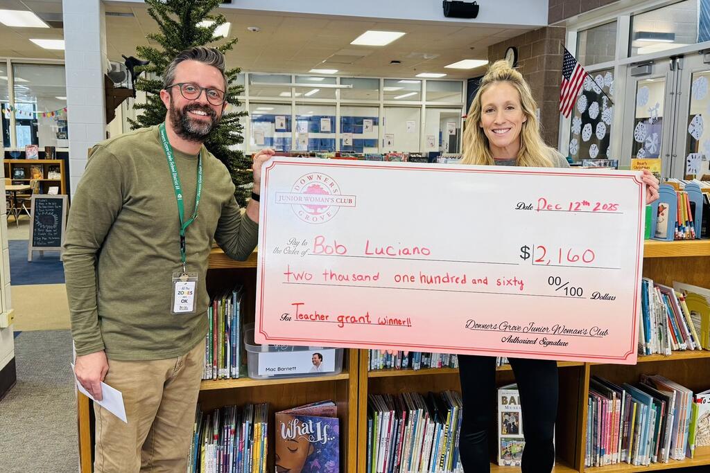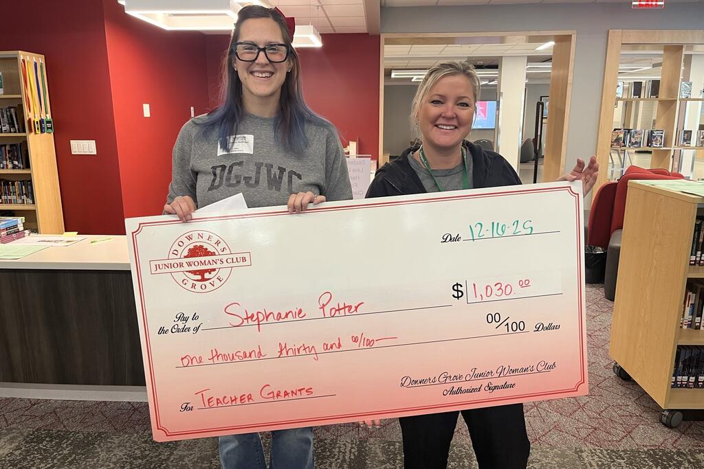Congratulations to the thirty-three District 58 educators who earned grant awards from the Downers Grove Junior Women’s Club. Club members recently surprised recipients with their awards at their schools. Please join us in congratulating these teachers on this well-deserved recognition. We are grateful for our strong partnership with the DGJWC and thank them for their continued generosity and support of our staff and students.